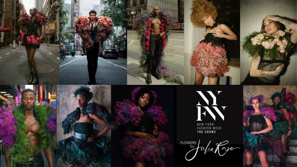 Turning heads and dropping jaws, we brought the drama to New York Fashion Week with floral couture that stole the spotlight on the red carpet at Runway 7, Sony Hall. Because why wear fabric when you can wear flowers?