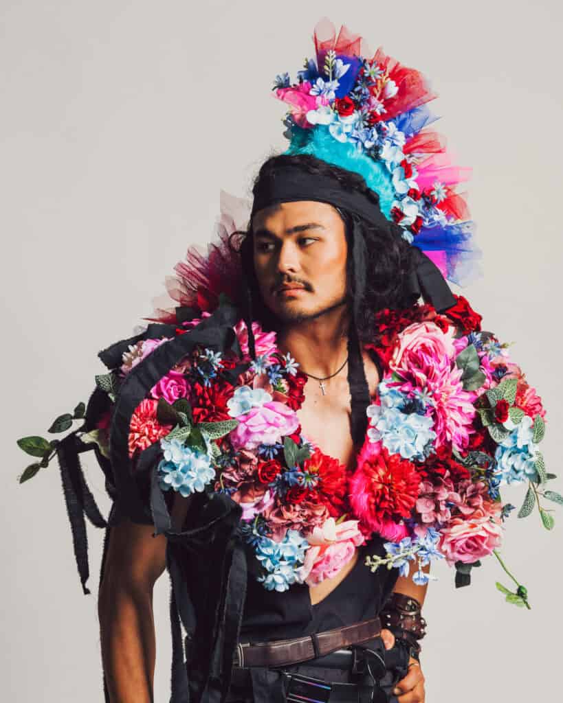 The richness of the floral textures created a stunning juxtaposition with the edgier rock elements, showcasing the versatility and beauty of wearable floral art.