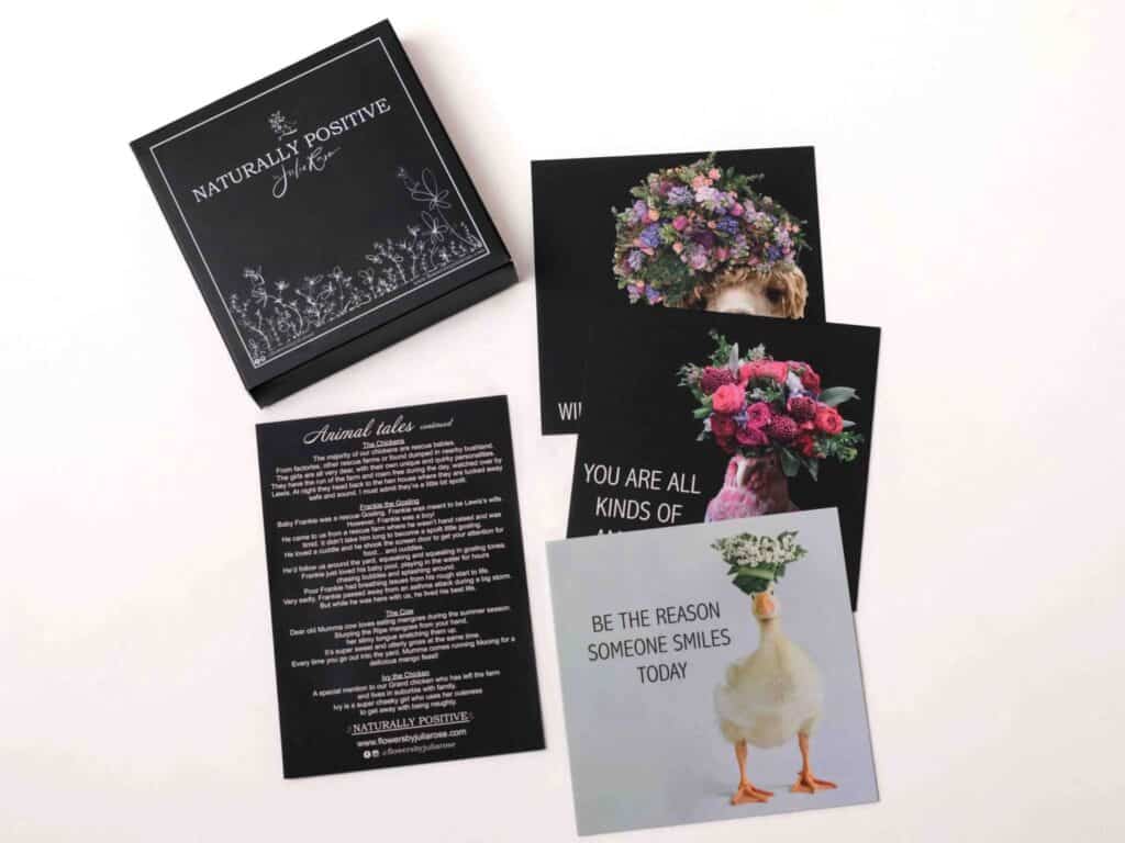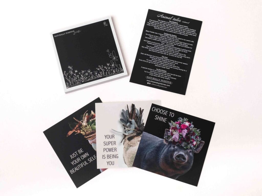 But, these cards aren’t about just appearances. A percentage of the profit goes towards supporting the farm animals’ needs. By purchasing the Naturally Positive Decks, customers are contributing to the animals’ piggy bank, making it a truly meaningful gift.